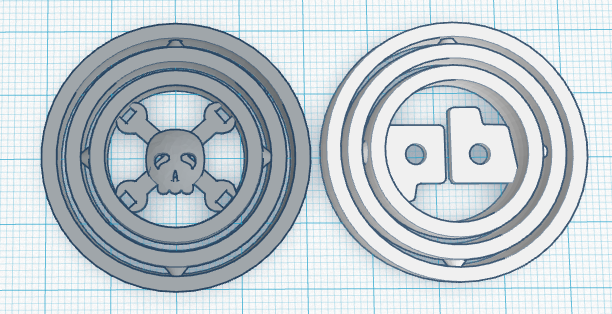 -Note how small cones on the inner ring fit into dimples in the next ring. The parts don’t touch. When printed the inner ring will be trapped but still able to spin freely.