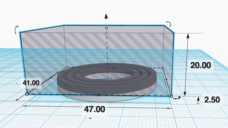 -Resize and move the Box shaped hole so it covers the gimbal then raise the box 2.5 mm above the surface.
