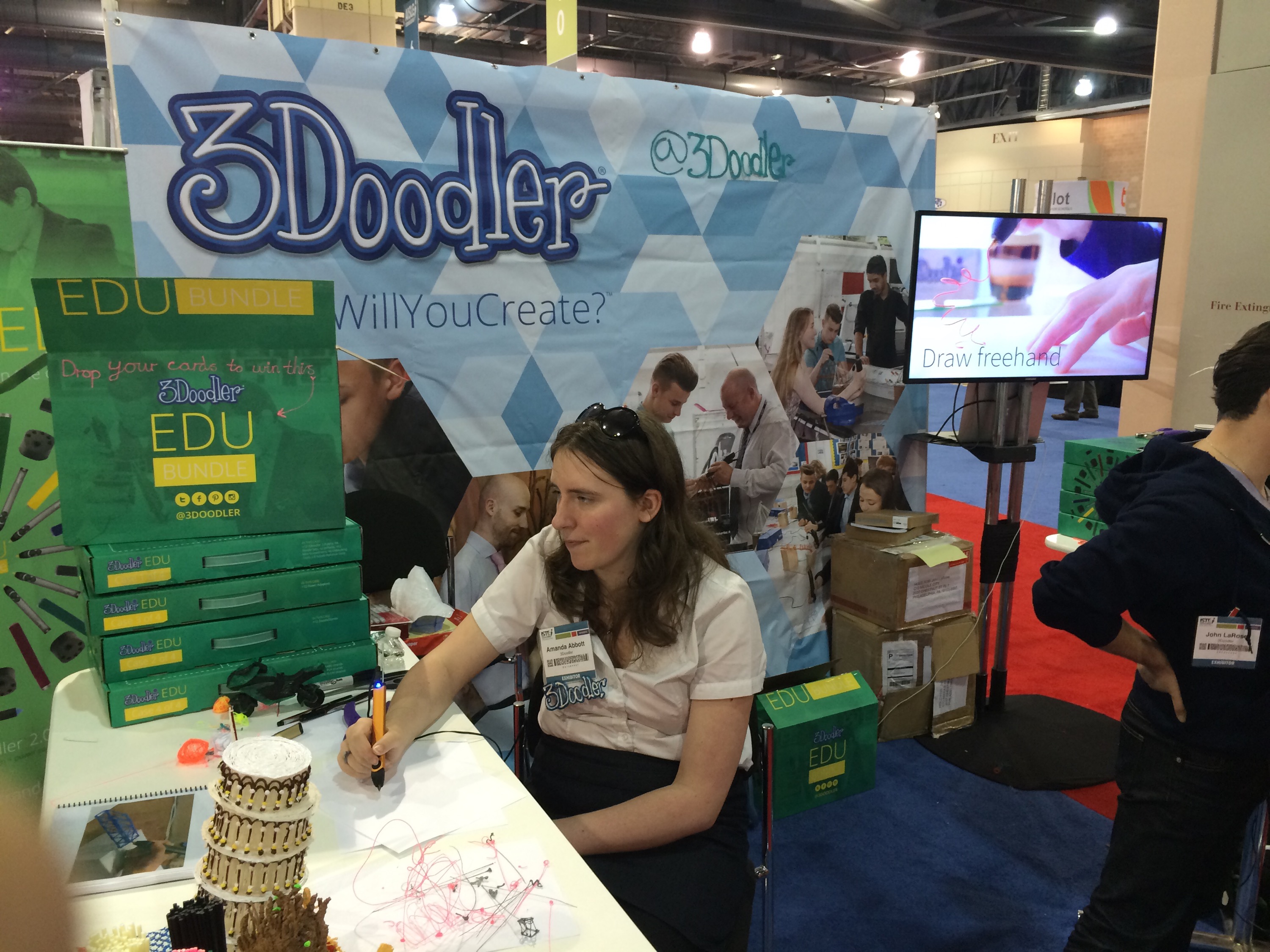 3Doodler was at the ISTE 2015 Vendor Expo showing off their newest 3D pen the 3Doodler 2.0. There were several artists at the booth lazily making models out of plastic. Some impressive hand drawn creations were on display.