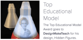 Woot! My Hidden Figures – Friendship 7 model won FormLabs 3D Design Awards in the Top Educational Model category.