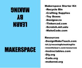 The Makerspace Starter Kit has been updated for 2018! Now in handy business card size for your next MakerEd workshop or professional development event. In three, ready-to-print formats that you are free to… Continue reading